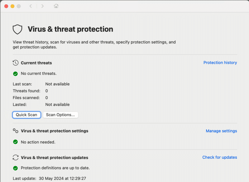 When you open the Defender app and you see this all is good.