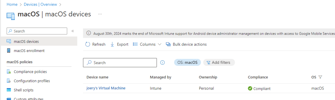 And that’s it, congratulations you have just enrolled your Mac in Intune and onboarded it in Defender.